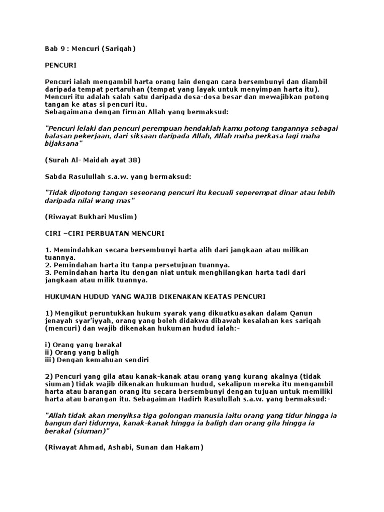 Icl Curi Notes About Mencuri Curi Mencuri Merupakan Kesalahan Hudud Dan Ianya Dilarang Keras Studocu
